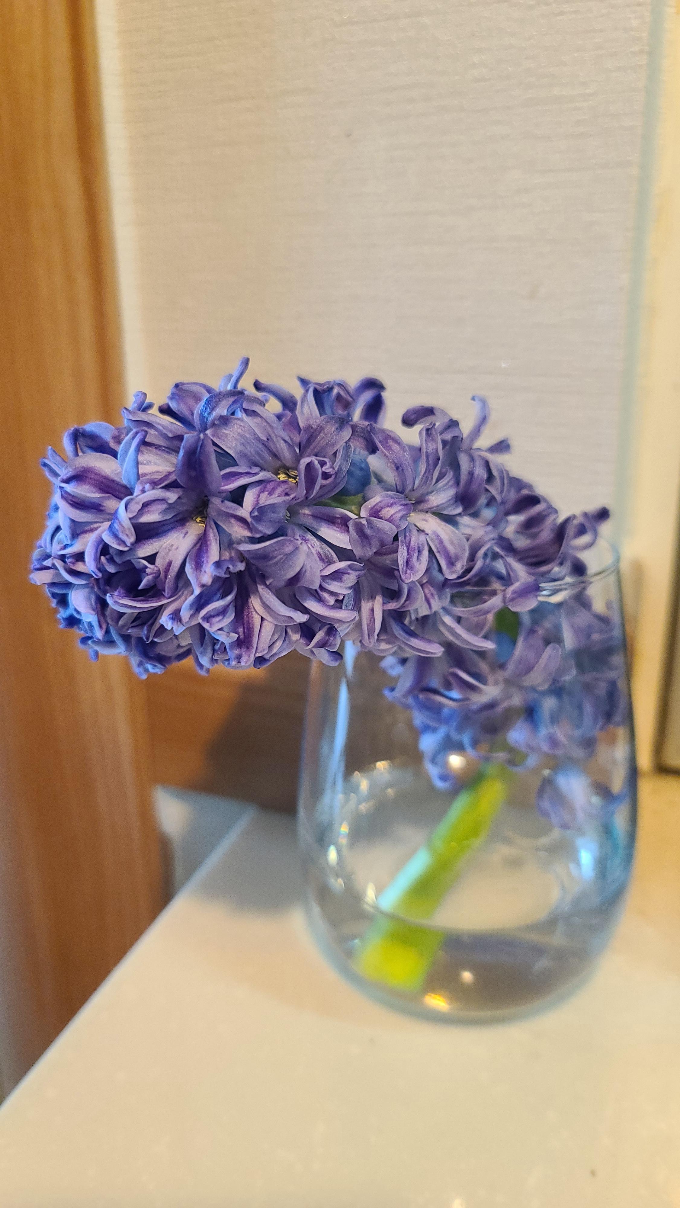 -수경 재배한 히아신스는 벌써 꽃이 피었다.