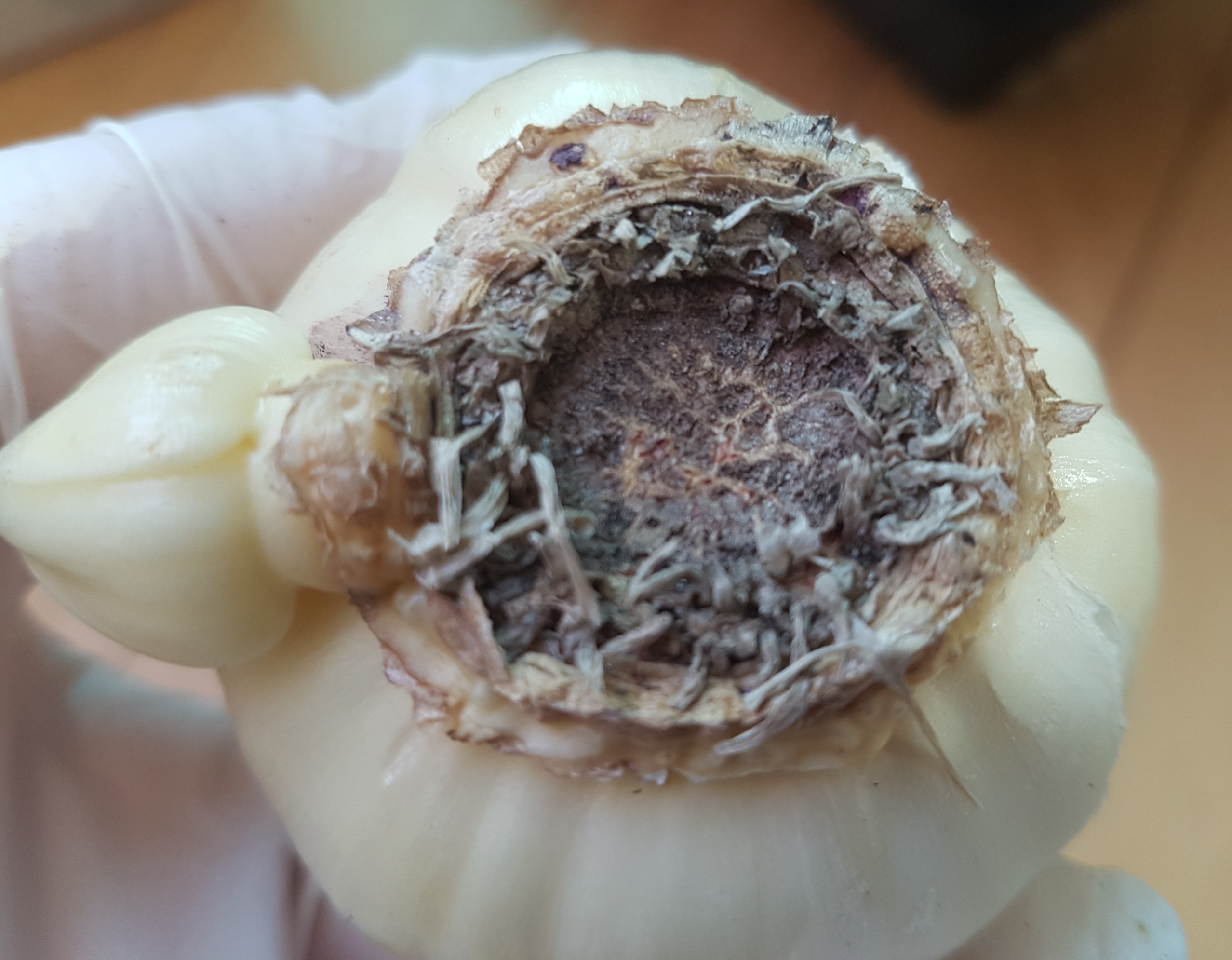 곰팡이가 있던 구근은 흙에 심어도 곰팡이가 생길 확률이 높았다.